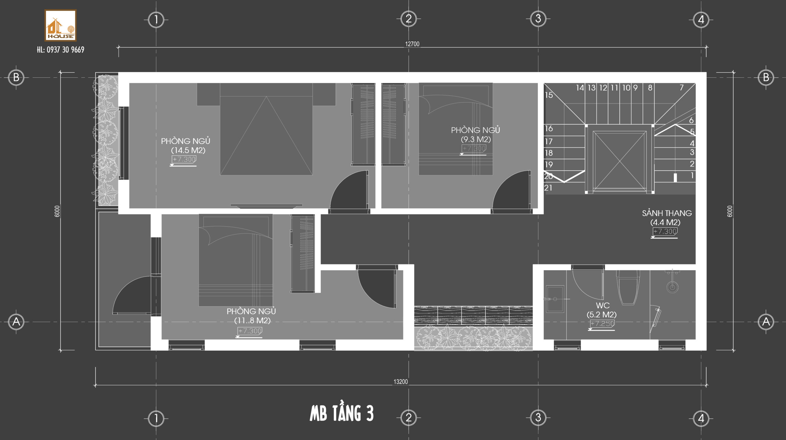 Tầng 3: Không Gian Riêng Tư Thoải Mái Tầng 3 được quy hoạch thành các phòng ngủ riêng tư. Đảm bảo sự nghỉ ngơi và thư giãn tối đa cho các thành viên.