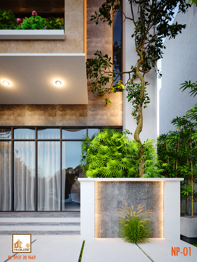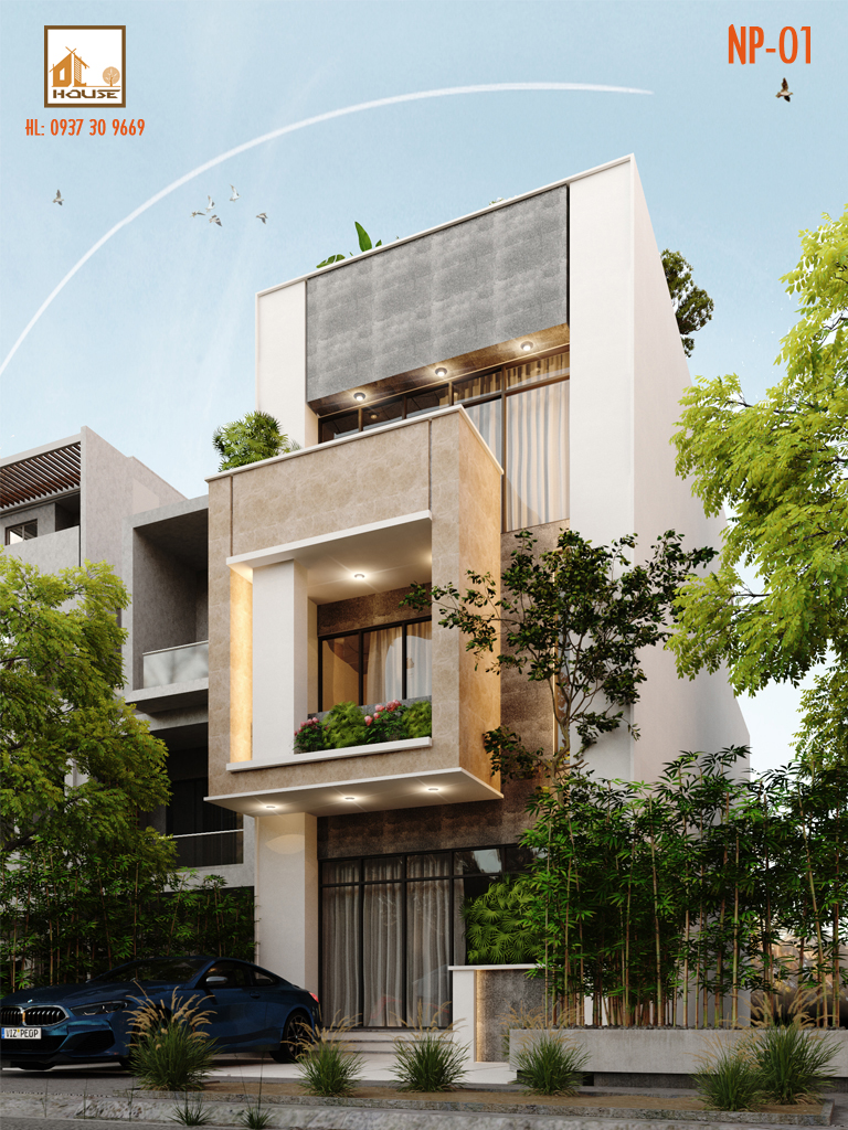 Phong cách kiến trúc hiện đại được lựa chọn cho công trình này, tập trung vào sự tối giản, đường nét khỏe khoắn và công năng sử dụng. Vật liệu hiện đại như kính, bê tông, thép kết hợp với mảng xanh tự nhiên tạo nên tổng thể hài hòa và sang trọng. Việc kết hợp hài hòa giữa các khối hình học, vật liệu và màu sắc đã tạo nên một mẫu nhà phố đẹp đúng nghĩa, không chỉ phù hợp với xu hướng mà còn bền vững với thời gian.