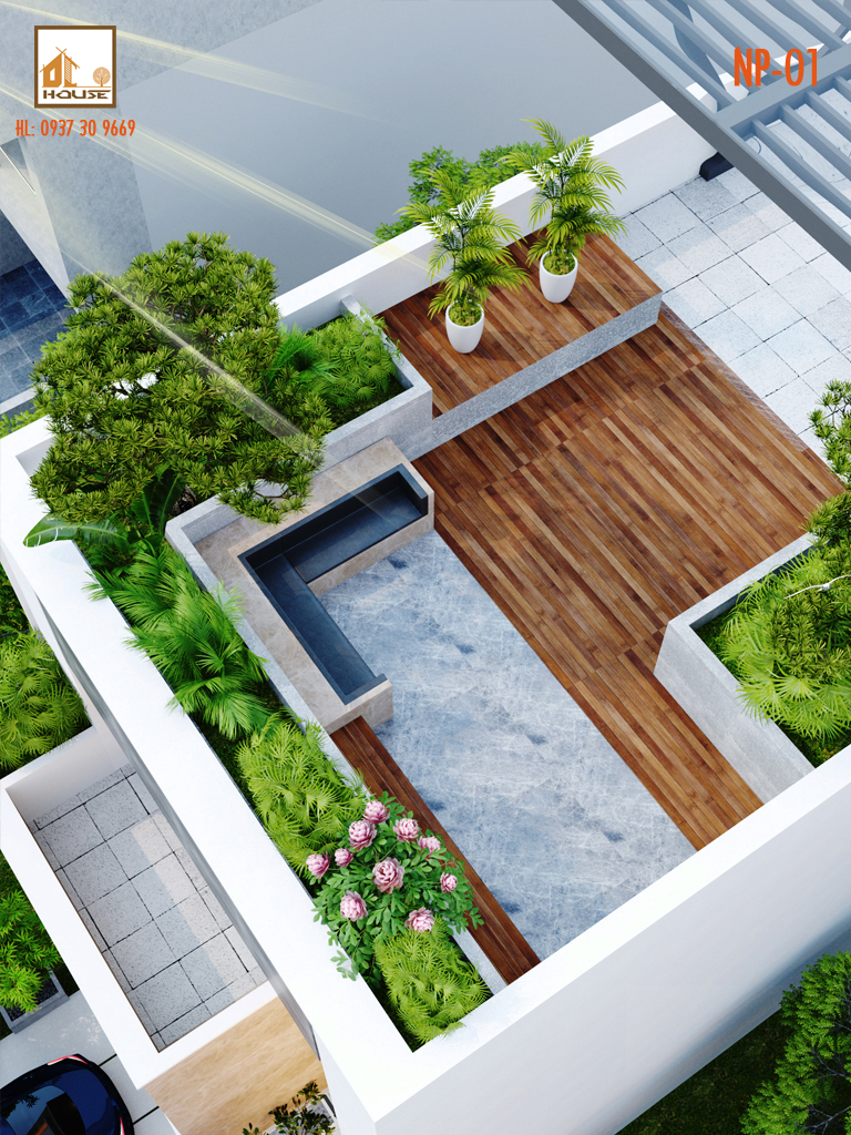 - Sân trước nhà: Là khoảng đệm xanh mát, tạo sự riêng tư và là nơi đậu xe thuận tiện.
