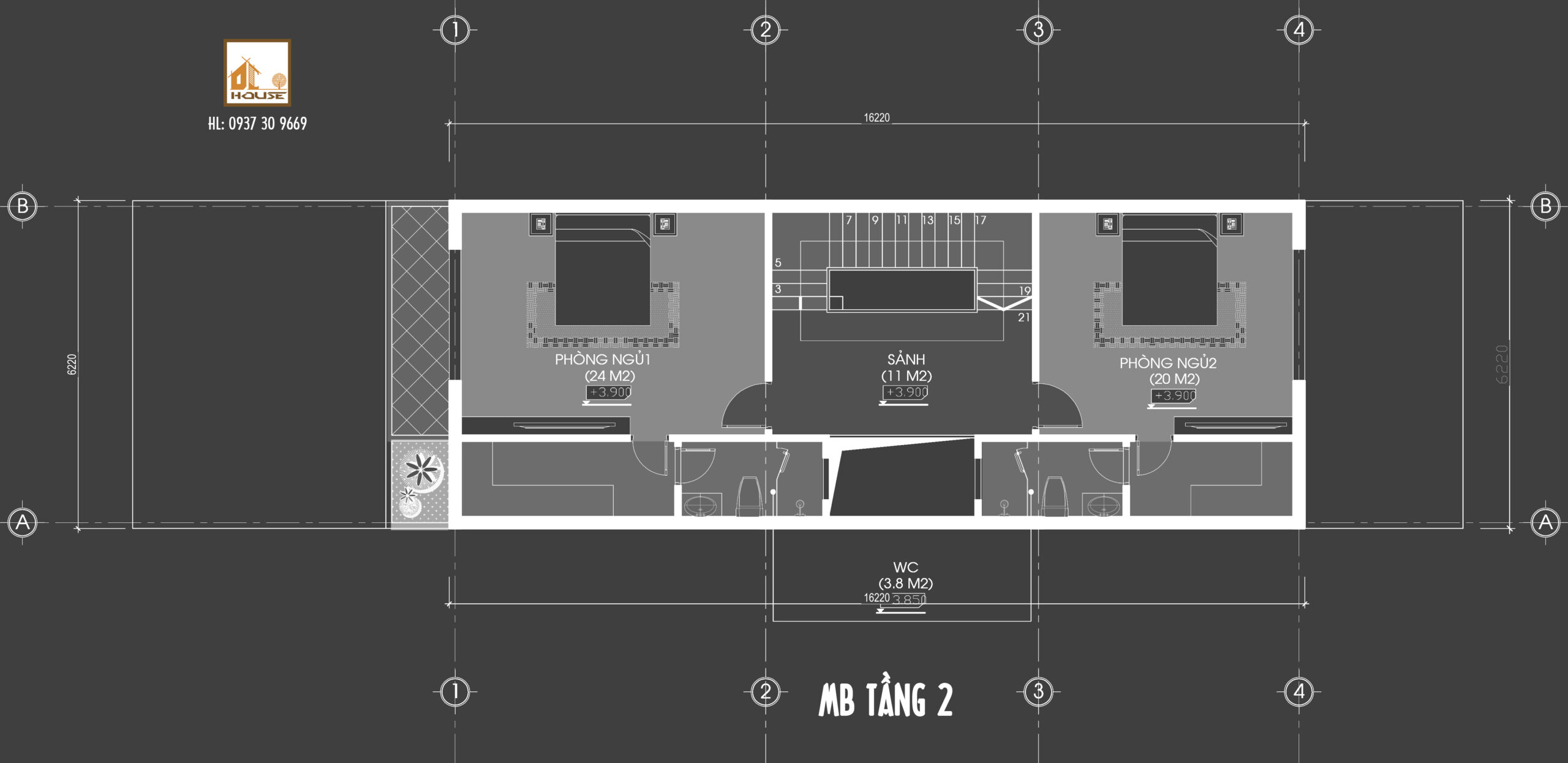 Tầng 2: Không Gian Riêng Tư Thoải Mái Tầng 2 là nơi bố trí không gian riêng tư với 2 phòng ngủ chính, mỗi phòng đều có vệ sinh riêng biệt và khu vực thay đồ.