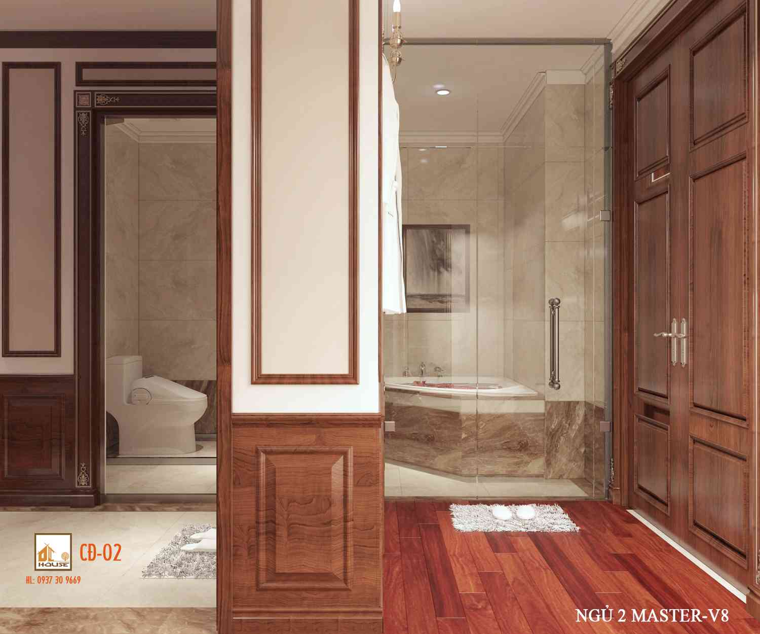 Ngay cả những không gian phụ như khu thay đồ và vệ sinh cũng được chăm chút tỉ mỉ. Đảm bảo sự đồng bộ trong thiết kế nội thất lâu đài.