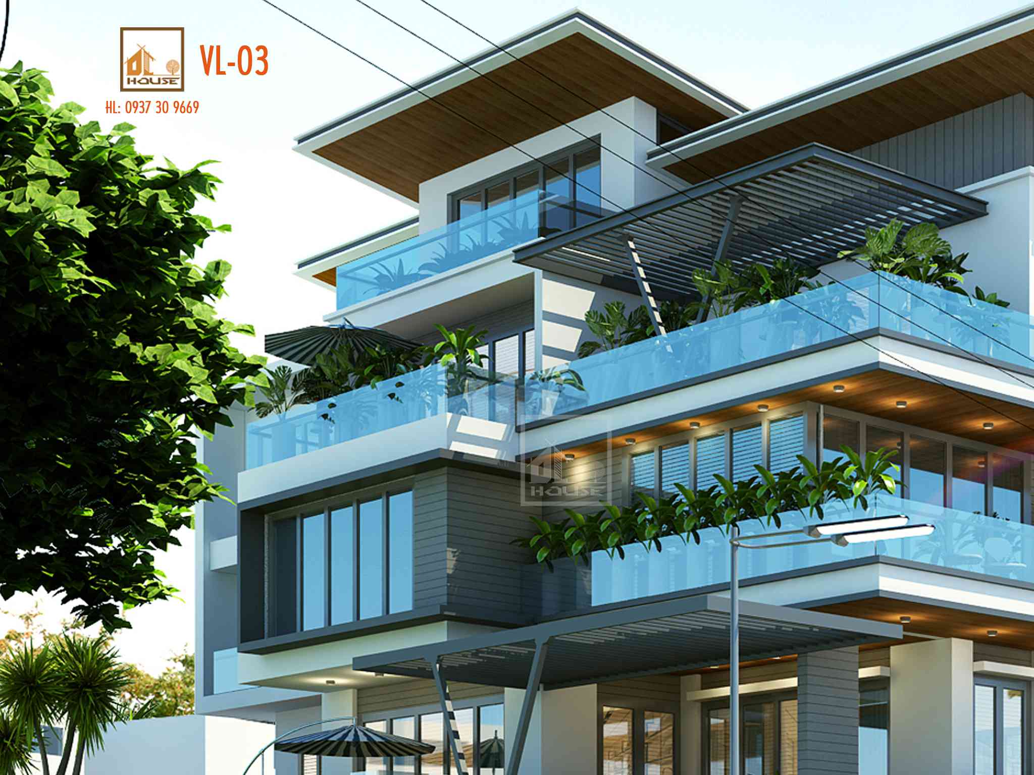 Để tạo điểm nhấn và tăng thêm vẻ đẹp thẩm mỹ. Các vị trí trần và vách ban công bay của công trình được ốp vật liệu gỗ ngoài trời. Sự kết hợp giữa vật liệu hiện đại (kính, bê tông). Vật liệu tự nhiên (gỗ) tạo nên một sự cân bằng hoàn hảo, mang lại cảm giác ấm cúng và gần gũi với thiên nhiên cho thiết kế villa nghỉ dưỡng này.