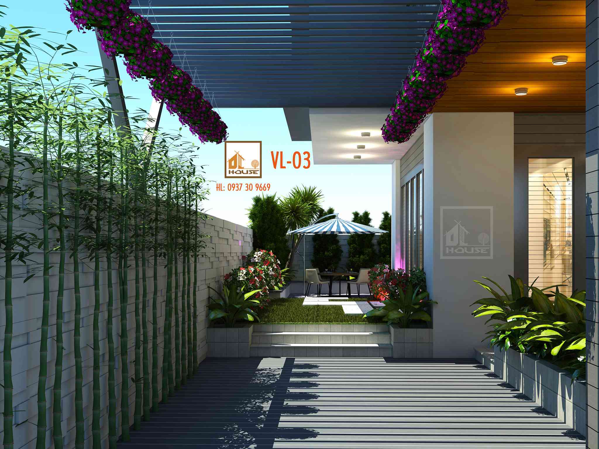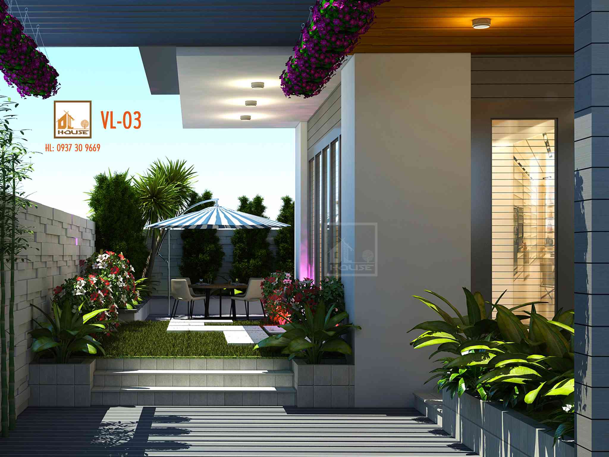 Hiểu được tầm quan trọng của việc điều hòa khí hậu và tạo không gian sống trong lành. Thiết kế villa sân vườn này đặc biệt chú trọng đến các mảng xanh. Trước khu phòng khách và các khu thoáng xung quanh nhà đều được tạo các không gian xanh nhỏ. Mang cây xanh và ánh sáng tự nhiên vào sâu bên trong công trình. Điều này không chỉ giúp thanh lọc không khí, giảm nhiệt. Tạo cảm giác thư thái, dễ chịu cho gia đình.