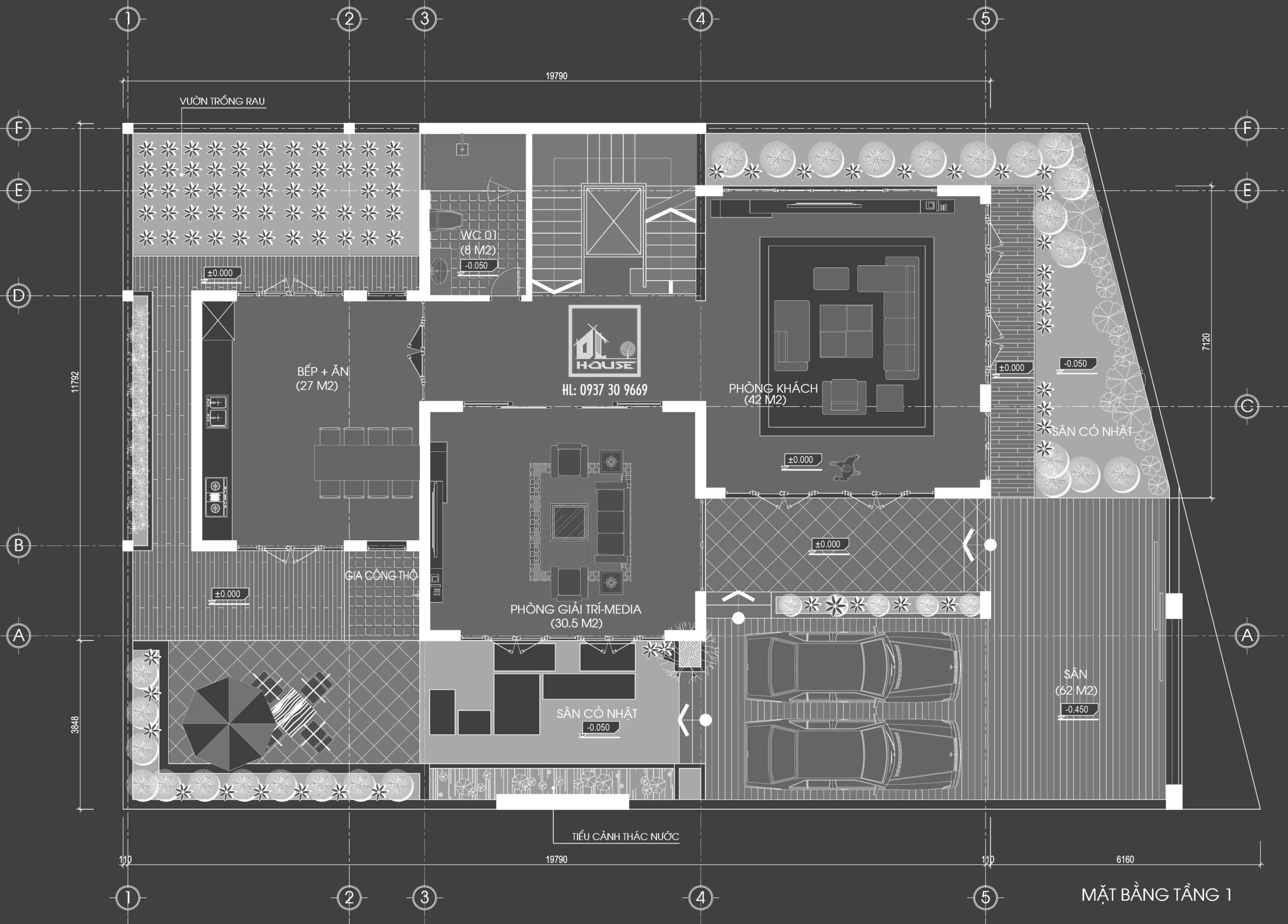 Việc lên bản vẽ thiết kế villa chi tiết là bước không thể thiếu để đảm bảo mọi không gian được bố trí hợp lý và tối ưu công năng. Căn villa này được phân chia công năng rõ ràng, đáp ứng mọi nhu cầu sinh hoạt của một gia đình hiện đại:
